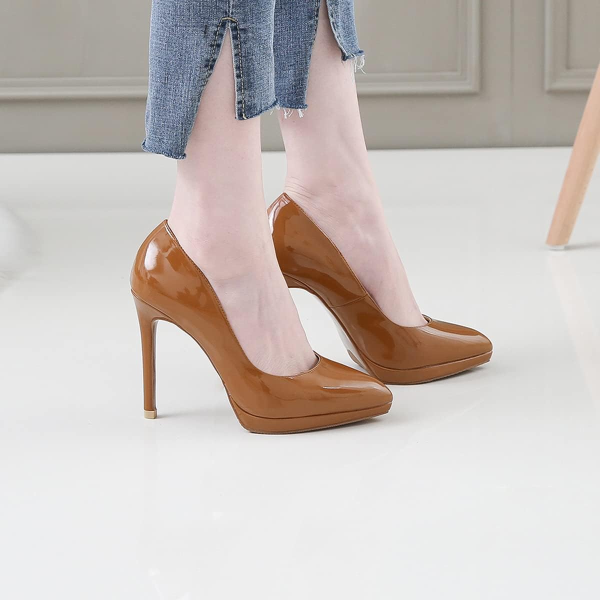 These brown patent pumps are a wardrobe staple—classic yet modern, versatile yet bold. Designed to add sophistication and poise, they are the perfect finishing touch whether you’re stepping into the office, attending an event, or enjoying an elegant night out.