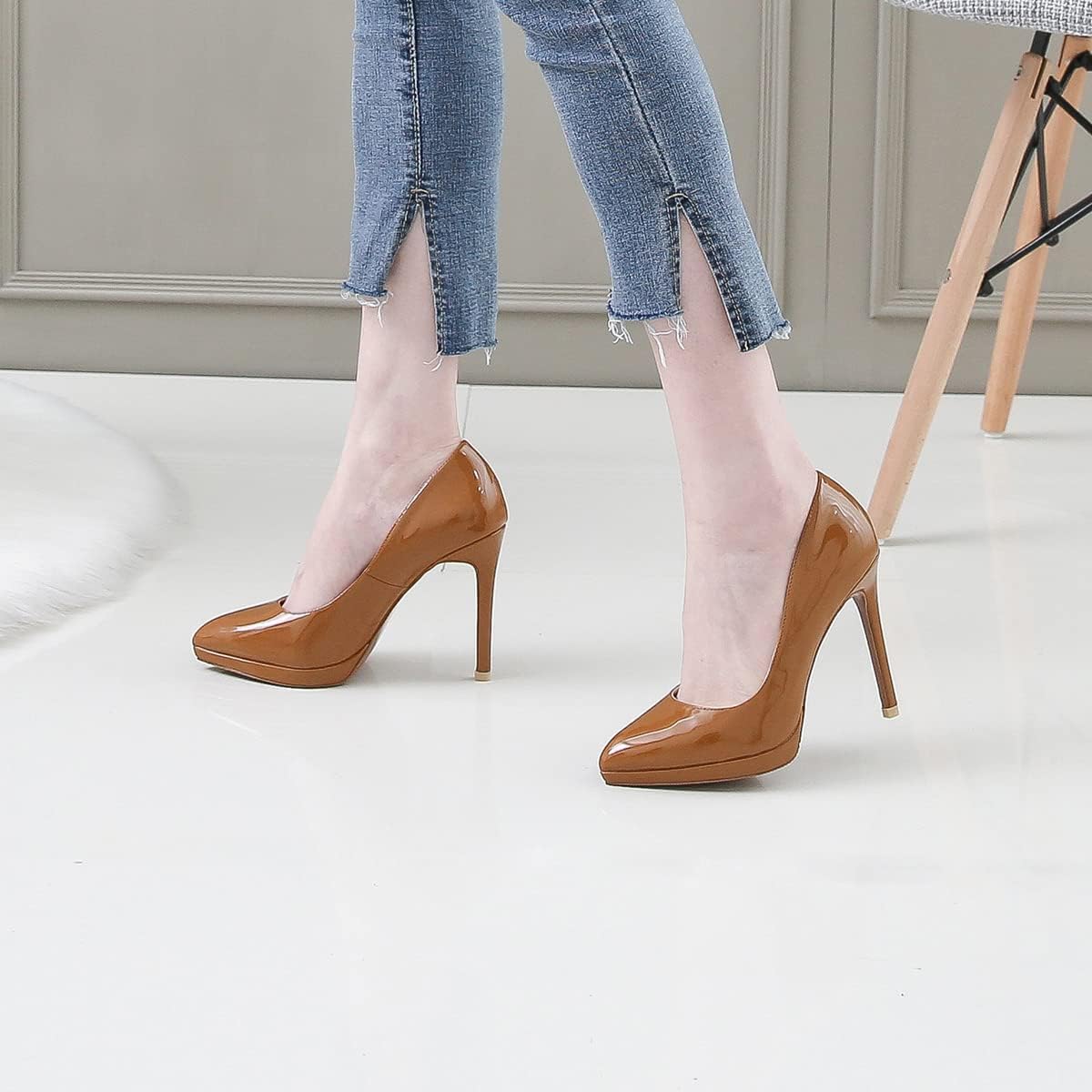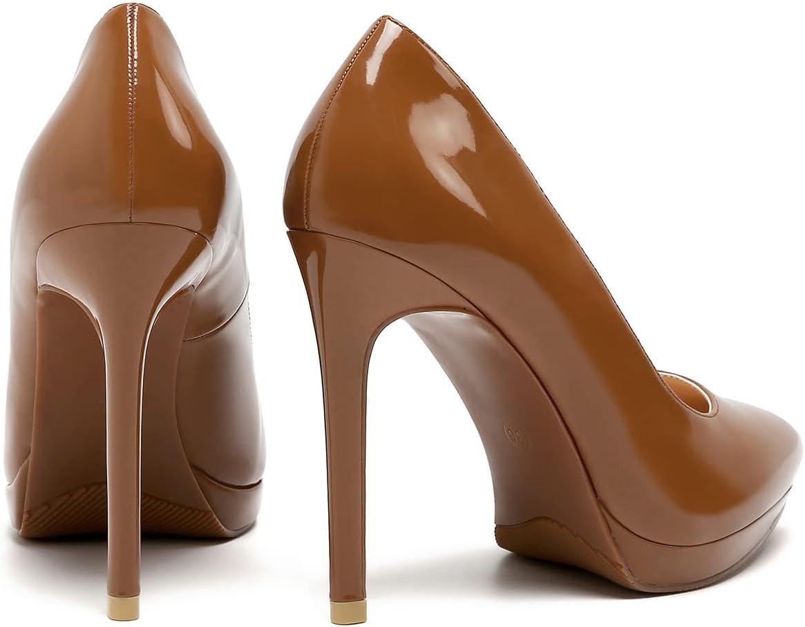 Timelessly elegant and powerfully feminine, these brown patent leather stiletto pumps are designed to make an impression. With their glossy finish, sleek silhouette, and elevated heel, they offer both sophistication and confidence in every step.